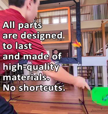 The steel frame assembles in just a few minutes, and its galvanized construction helps prevent rusting. The set includes clear instructions, plus a full video tutorial available online. Jazzminton Sport also features three US and international patents and comes with a one-year warranty for added peace of mind.